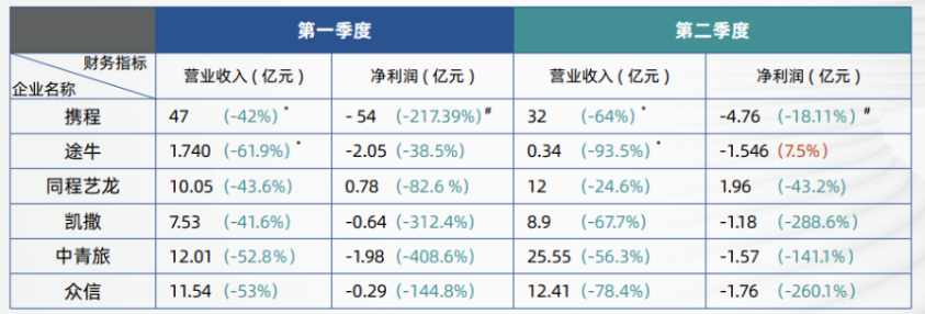 Grim financial results in Q1 and Q2 2020 for China’s leading travel agencies: (Top to bottom) Trip.com Group, Tuniu, Tongcheng-eLong, Caissa, CYTS, CITIC