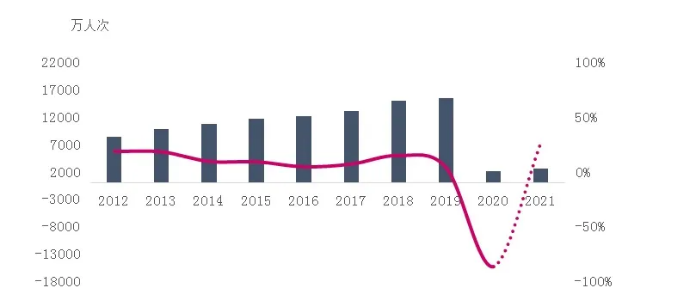 Outbound travel numbers in 2021 are expected to be 27% higher than in 2020 (Source: China Tourism Academy, 2021)