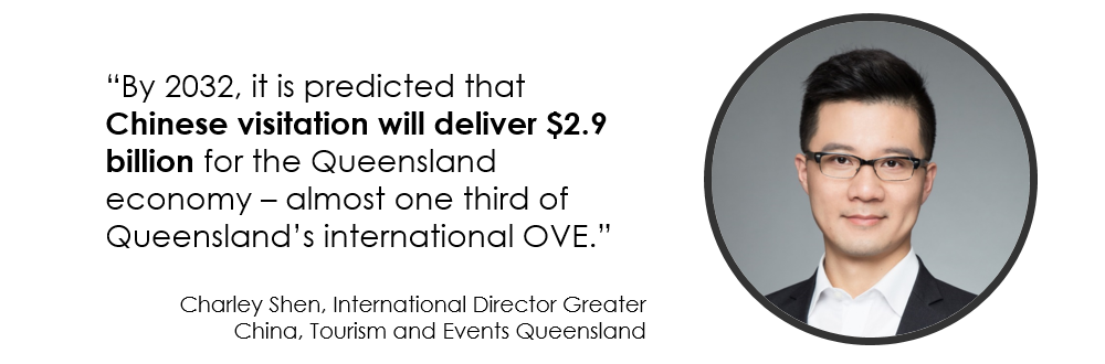 Fully committed to nurturing this important market, Tourism and Events Queensland (TEQ) is engaged in a comprehensive program of promotional activities in China. “By 2032, it is predicted that Chinese visitation will deliver $2.9 billion for the Queensland economy – almost one third of Queensland’s international OVE,” says Charley Shen, TEQ’s International Director Greater China.