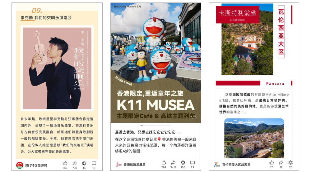 Outside of Asia, Spain’s Region of Valencia attracted attention for guides to quiet places and small towns. In another particularly popular post, Canada’s Destination BC promoted dining and other attractions in Richmond, a town whose population is around 50% of Chinese descent – according to the article.