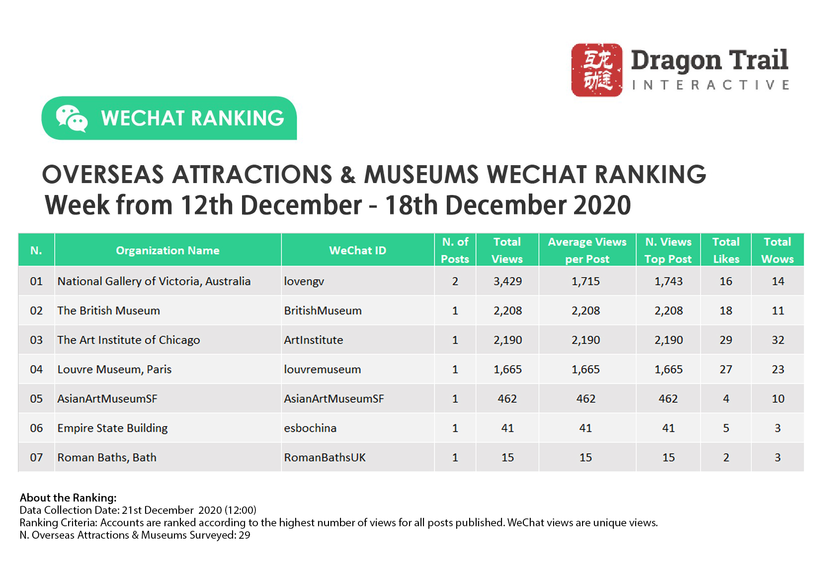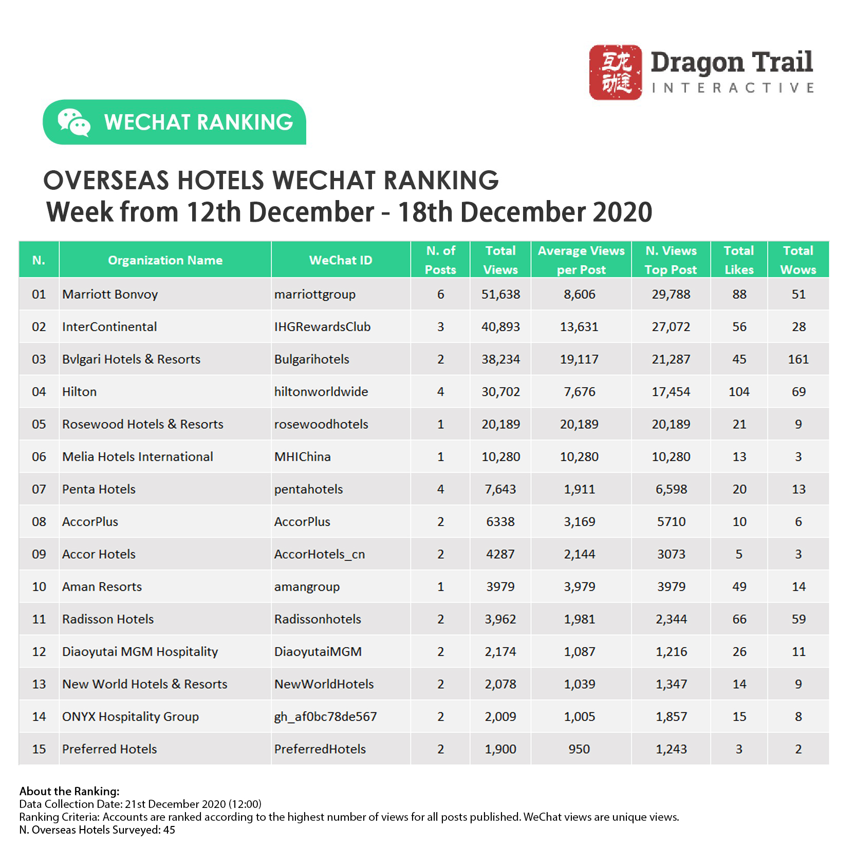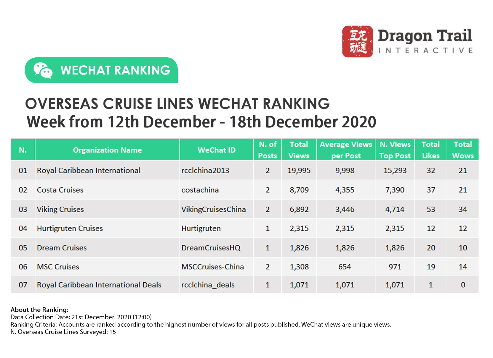 Ranking criteria: Accounts are ranked according to the highest number of views for all posts published. WeChat views are “unique views”.