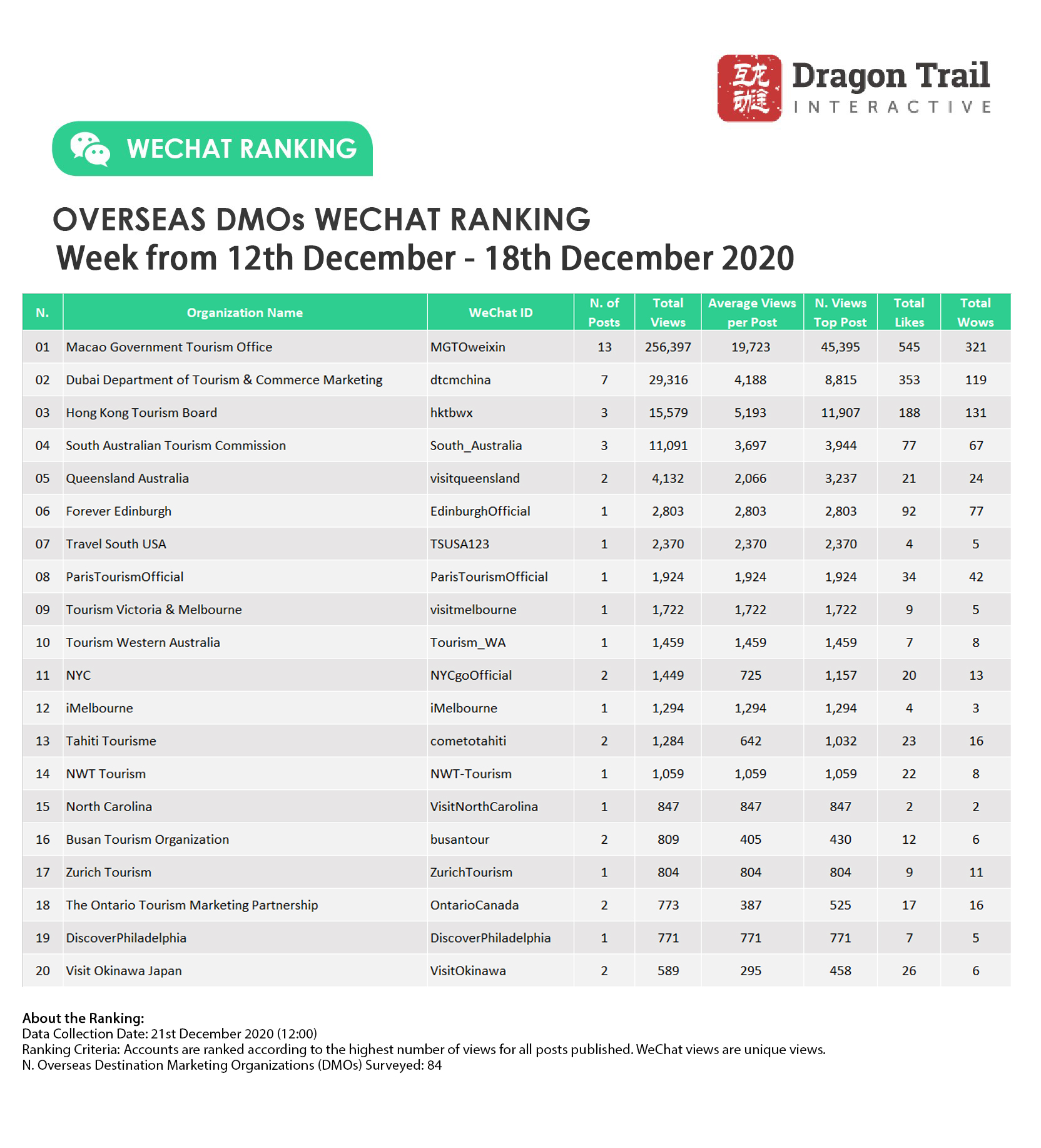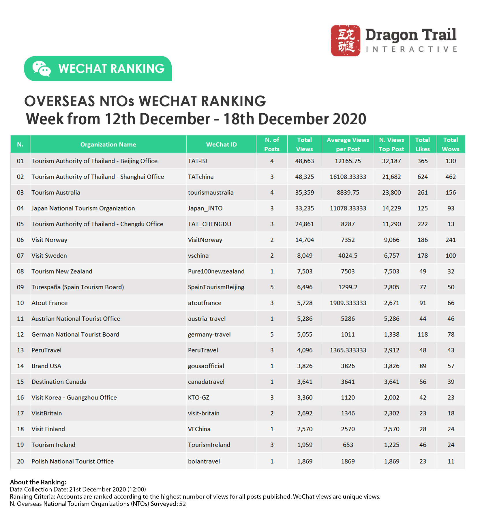 About the data: The data is jointly collected and compiled by Dragon Trail Interactive and Dingla, a B2B travel marketing platform assisting foreign organizations build long term travel trade relationships in China.