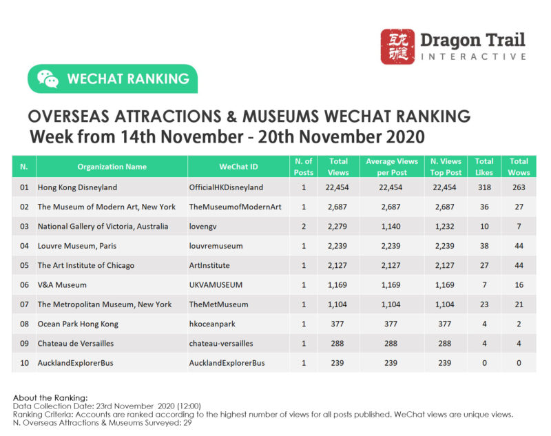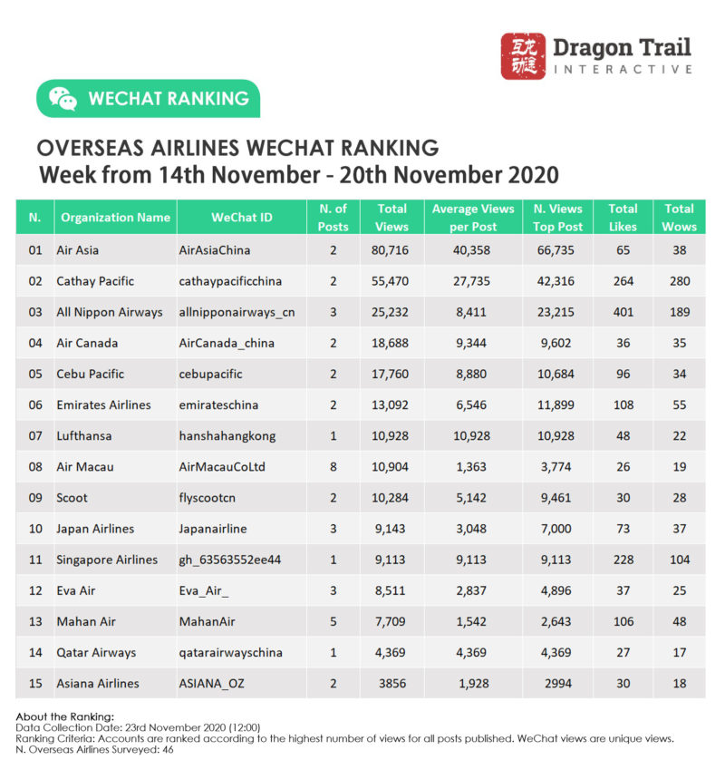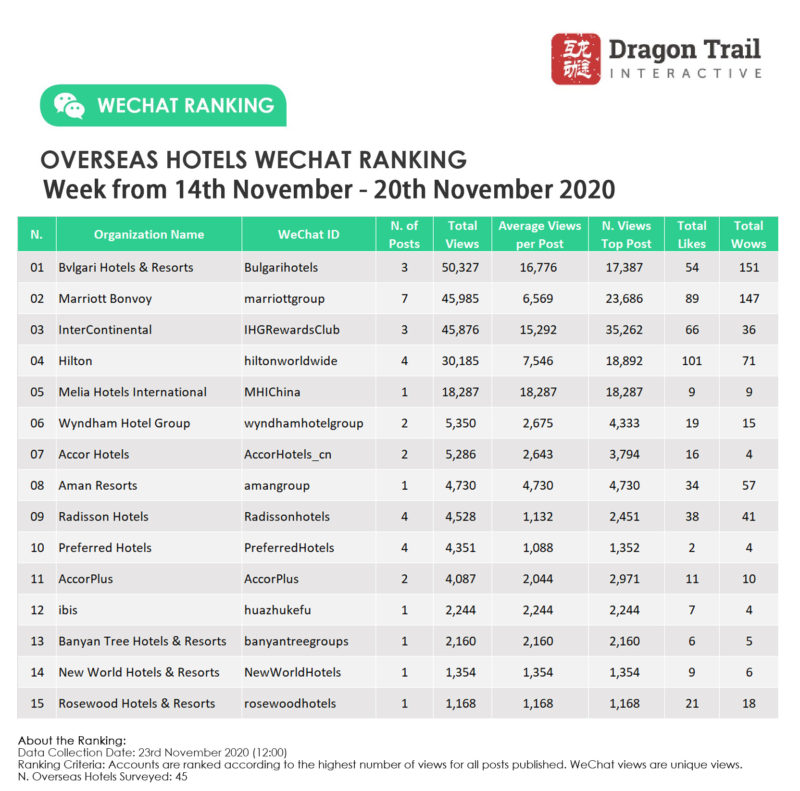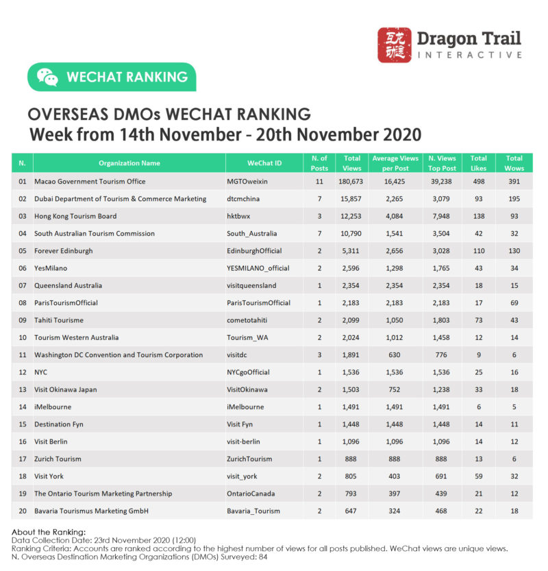 Ranking criteria: Accounts are ranked according to the highest number of views for all posts published. WeChat views are “unique views”.