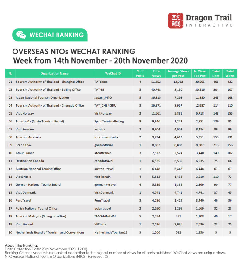 About the data: The data is jointly collected and compiled by Dragon Trail Interactive and Dingla, a B2B travel marketing platform assisting foreign organizations build long term travel trade relationships in China.