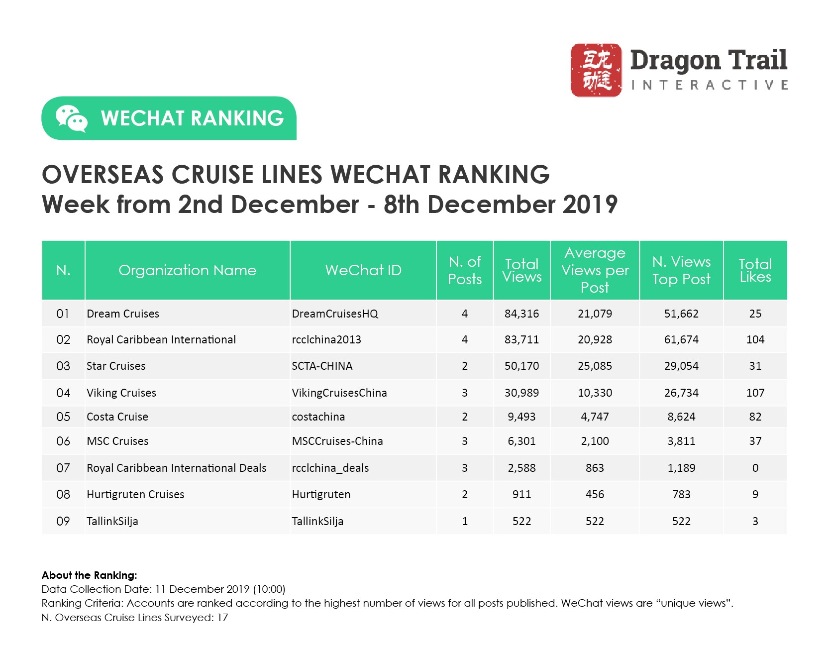 Ranking criteria: Accounts are ranked according to the highest number of views for all posts published. WeChat views are “unique views”.