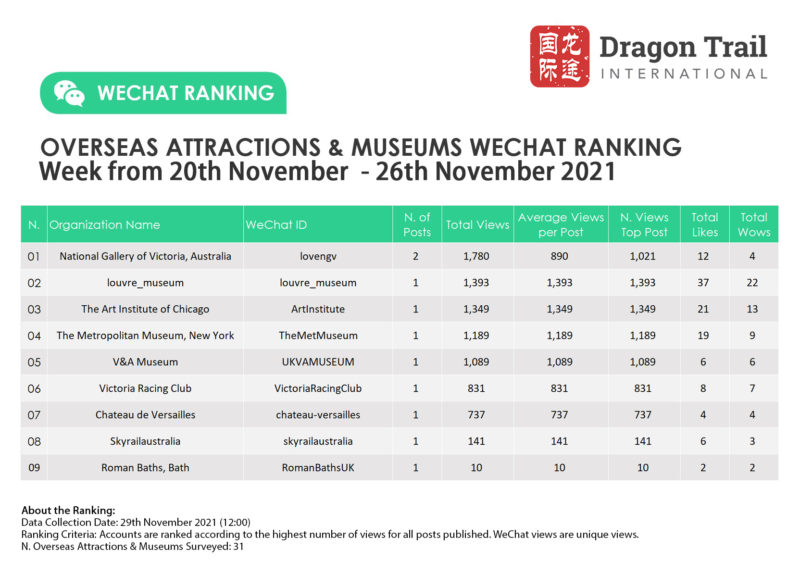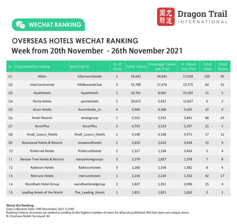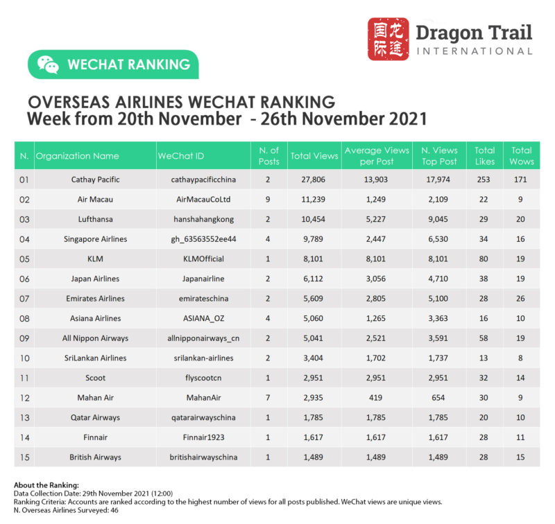 Ranking criteria: Accounts are ranked according to the highest number of views for all posts published. WeChat views are “unique views”.