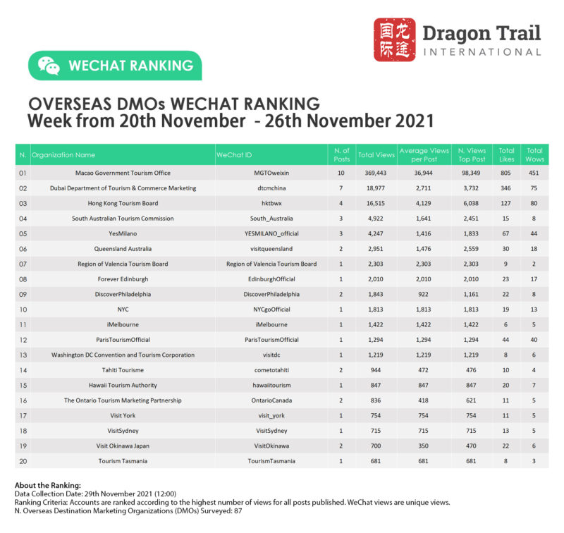 About the data: The data is jointly collected and compiled by Dragon Trail Interactive and Dingla, a B2B travel marketing platform assisting foreign organizations to build long term travel trade relationships in China.