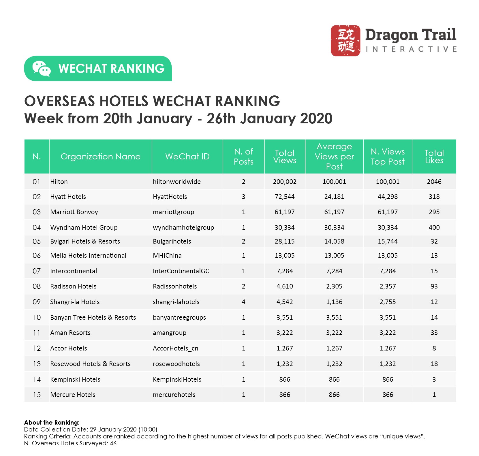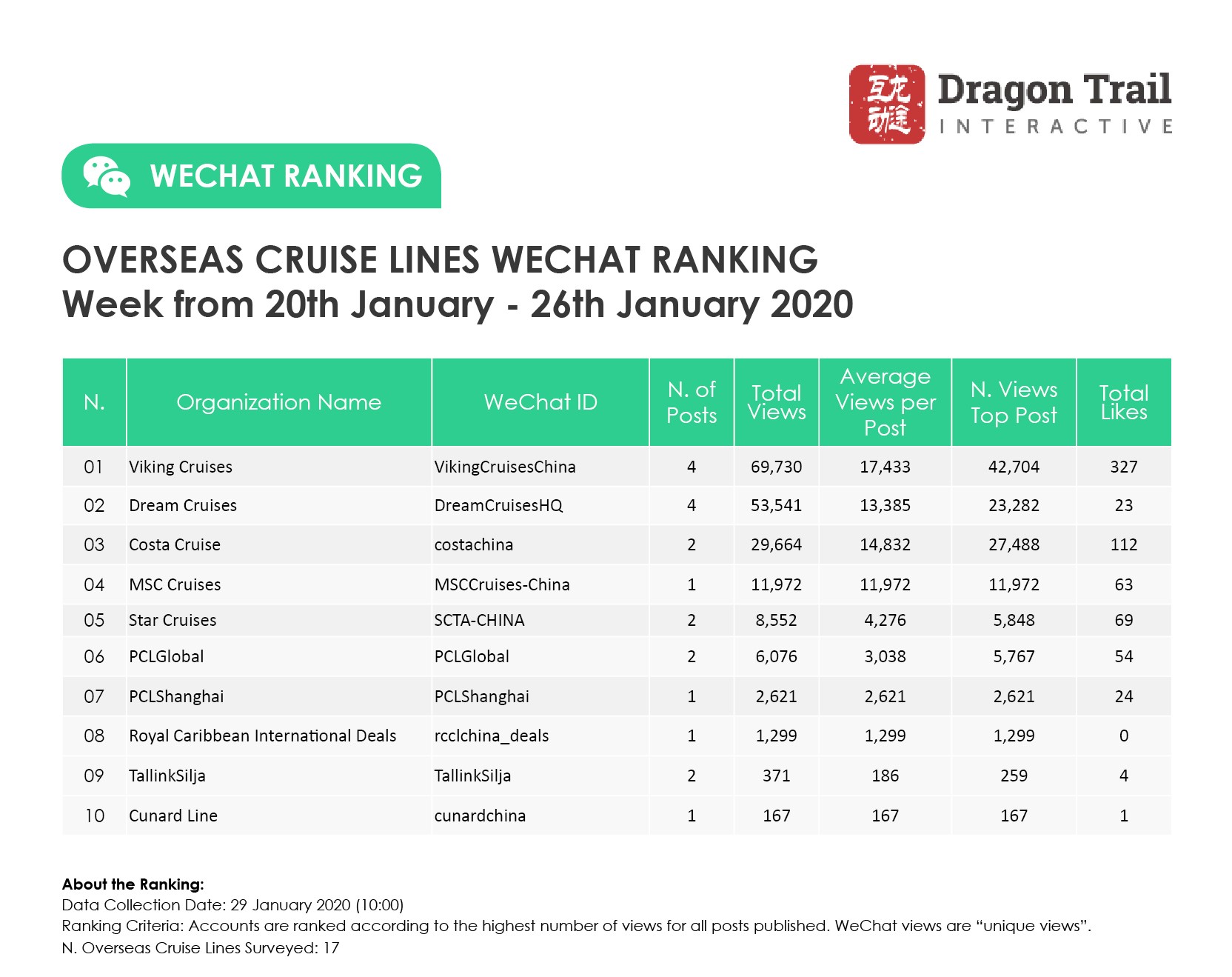 Ranking criteria: Accounts are ranked according to the highest number of views for all posts published. WeChat views are “unique views”.