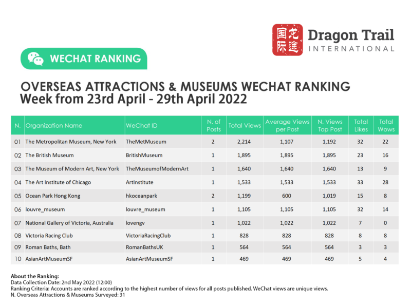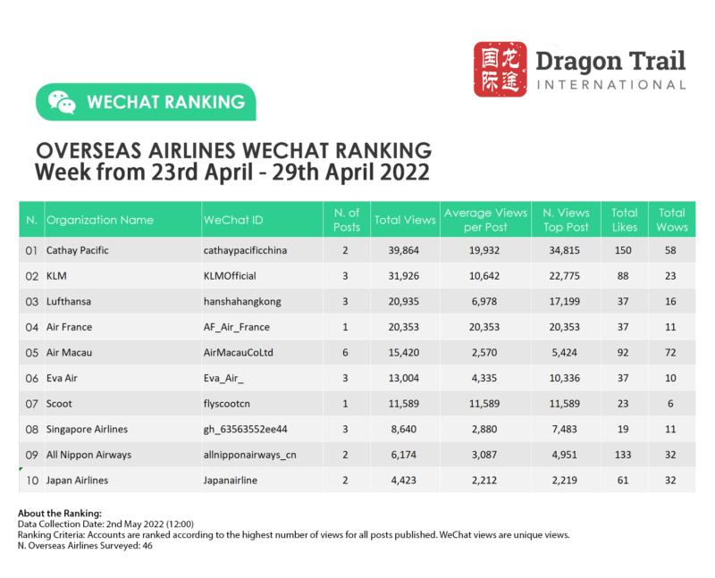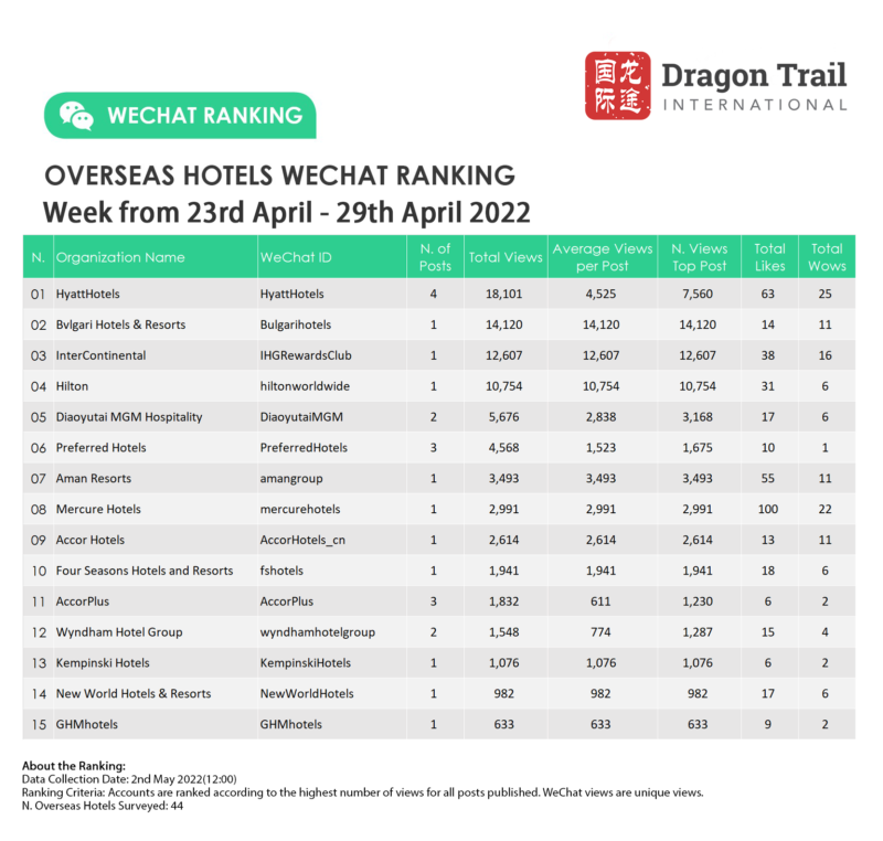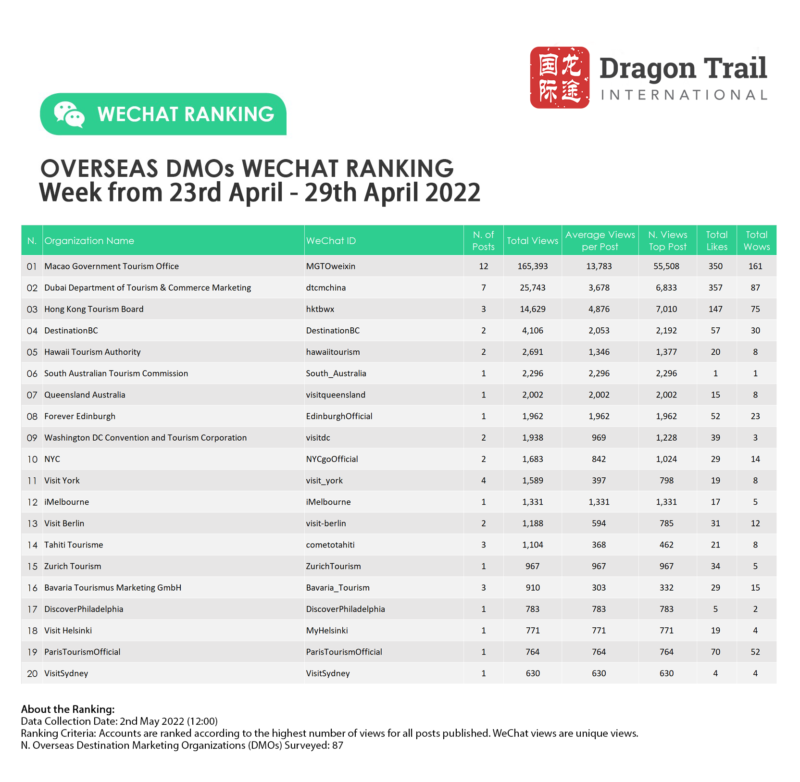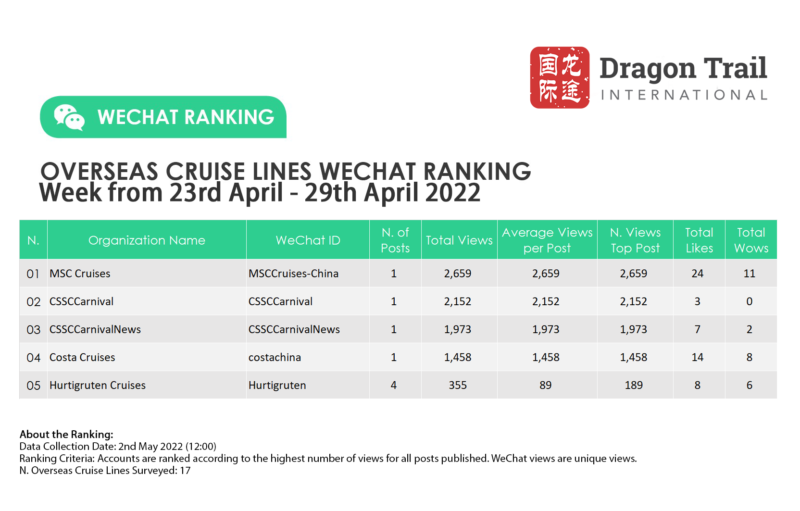 Ranking criteria: Accounts are ranked according to the highest number of views for all posts published. WeChat views are “unique views”.