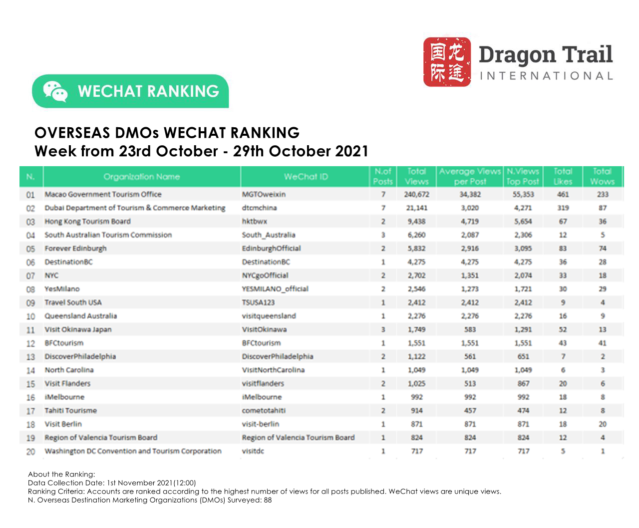 About the data: The data is jointly collected and compiled by Dragon Trail Interactive and Dingla, a B2B travel marketing platform assisting foreign organizations to build long term travel trade relationships in China.