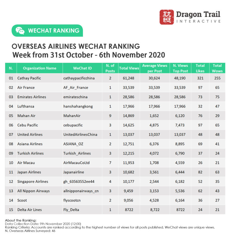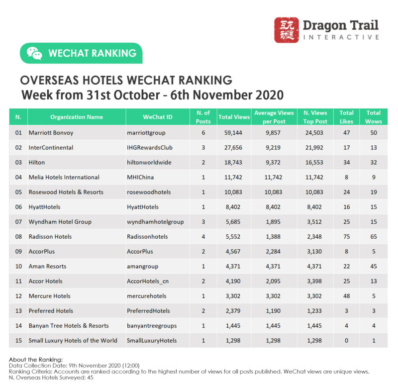 Ranking criteria: Accounts are ranked according to the highest number of views for all posts published. WeChat views are “unique views”.