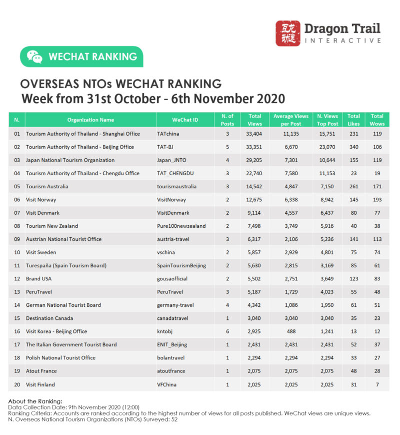 About the data: The data is jointly collected and compiled by Dragon Trail Interactive and Dingla, a B2B travel marketing platform assisting foreign organizations build long term travel trade relationships in China.