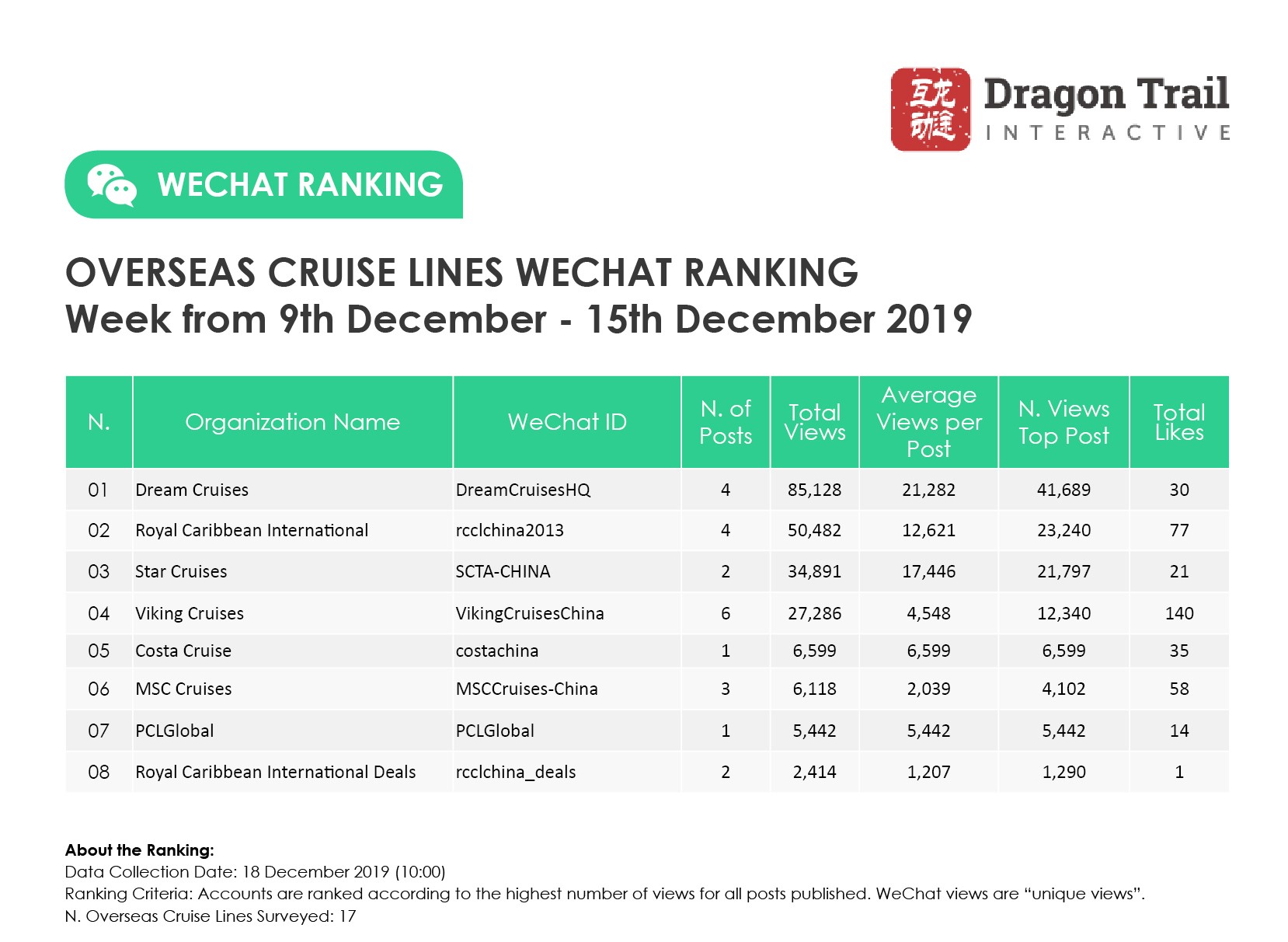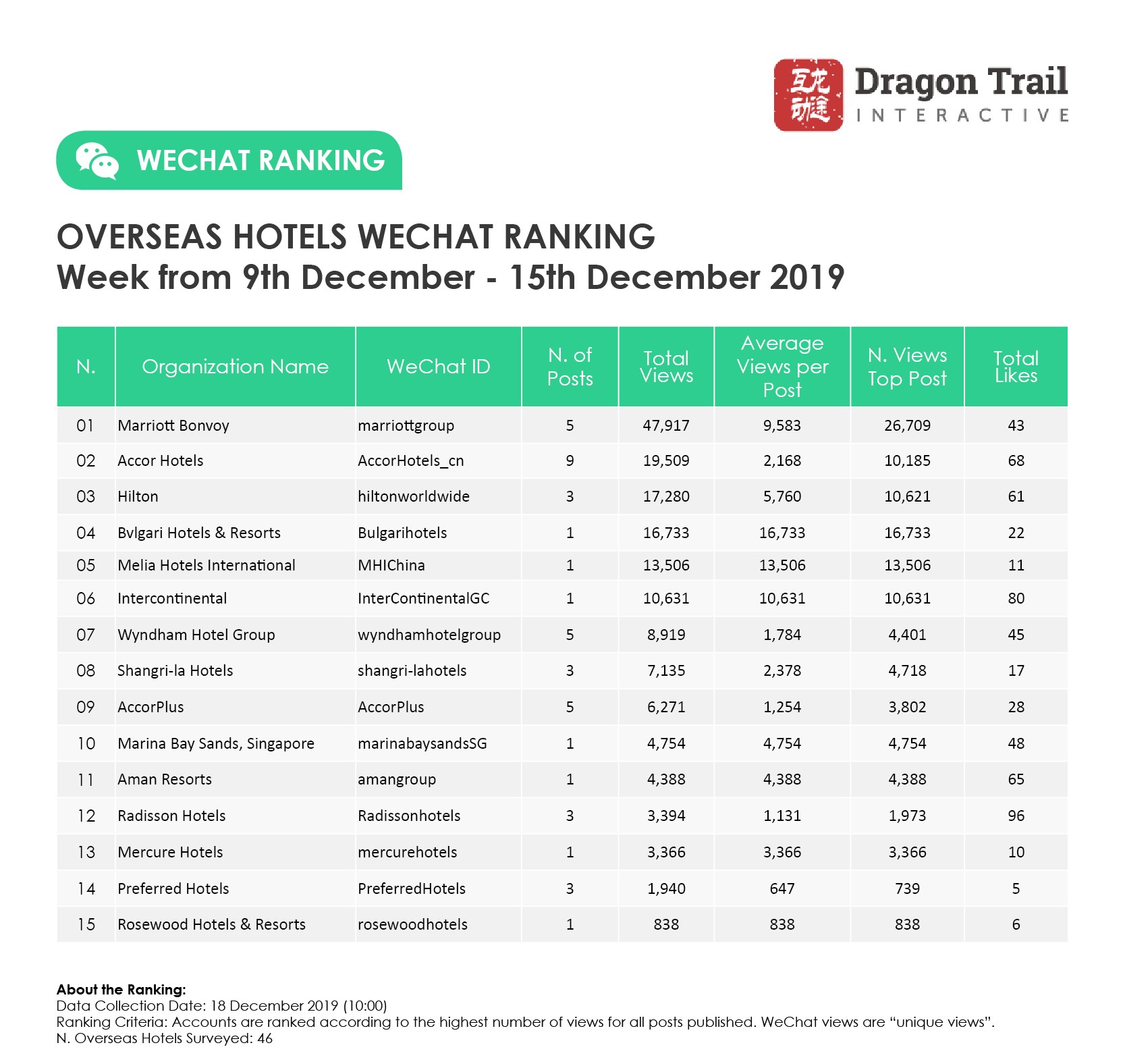 Ranking criteria: Accounts are ranked according to the highest number of views for all posts published. WeChat views are “unique views”.