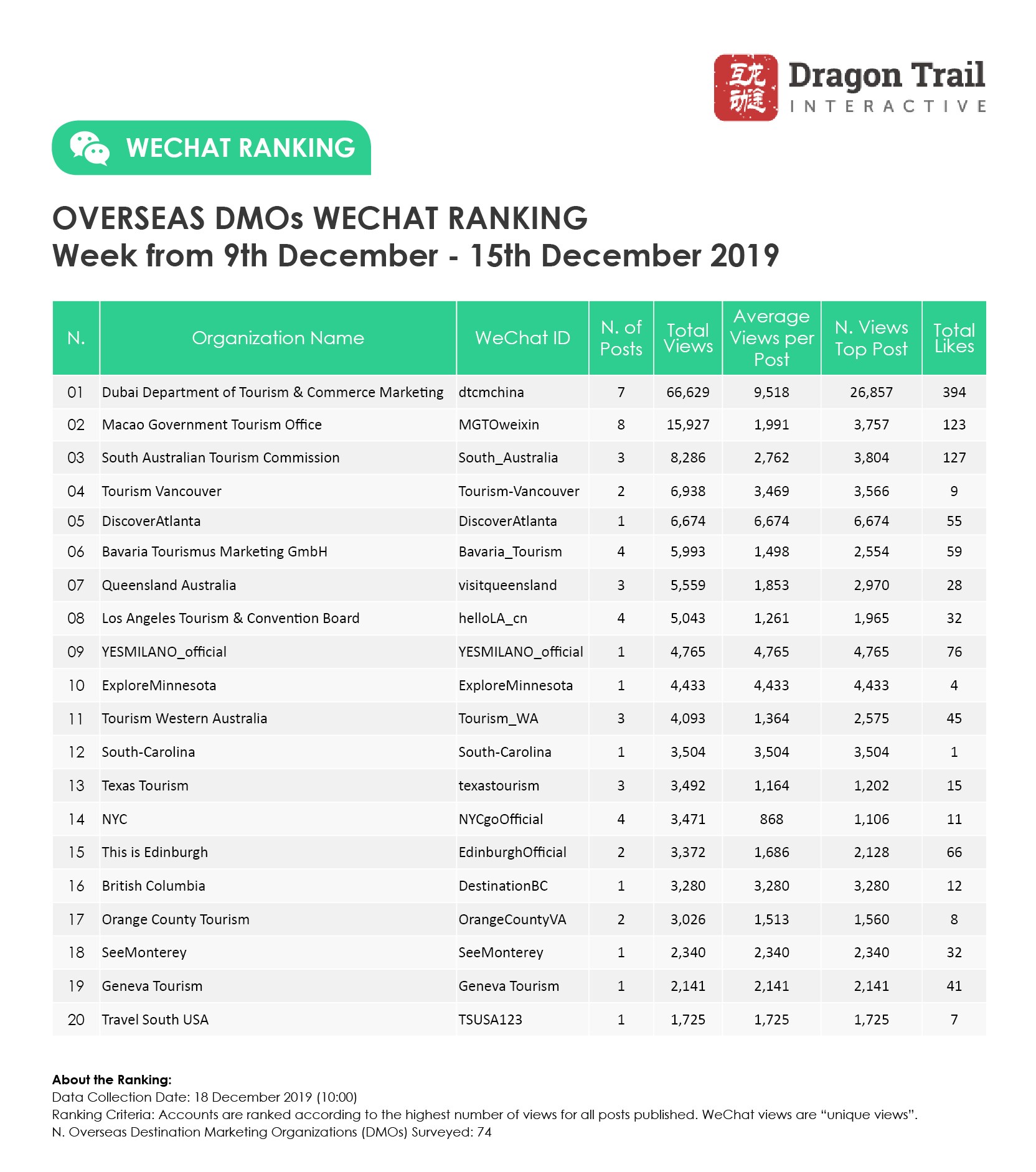 About the data: The data is jointly collected and compiled by Dragon Trail Interactive and Dingla, a B2B travel marketing platform assisting foreign organizations build long term travel trade relationships in China.
