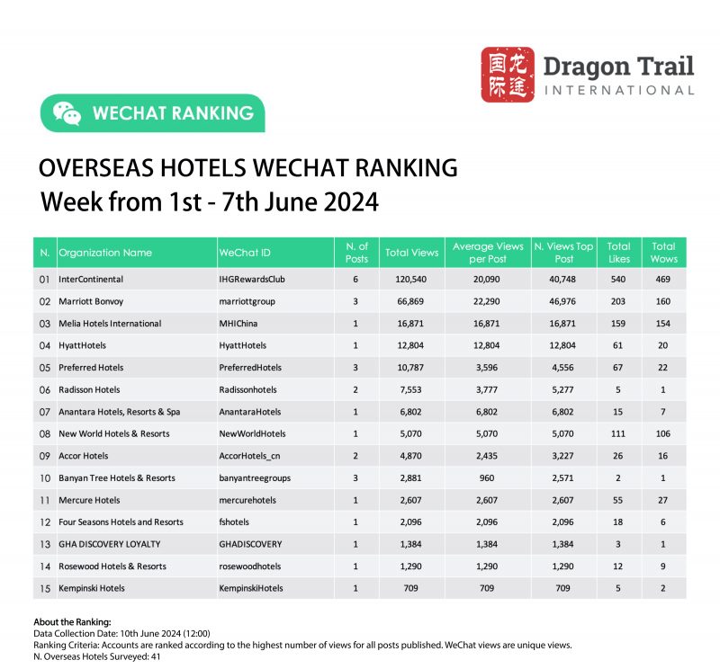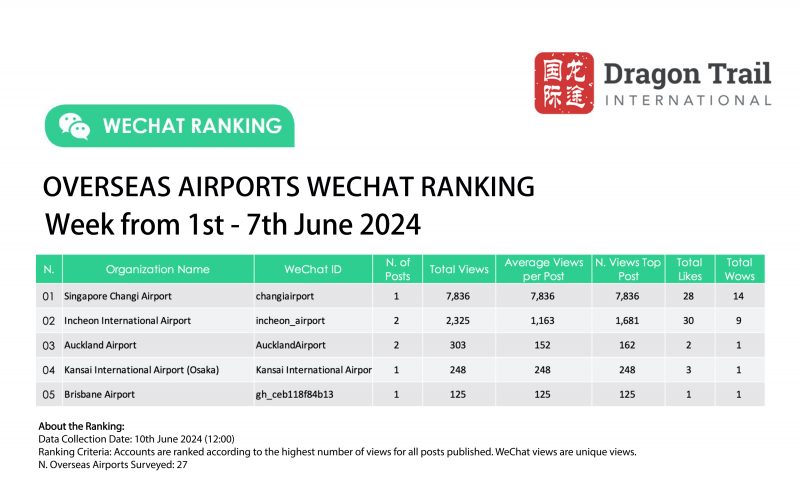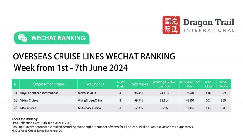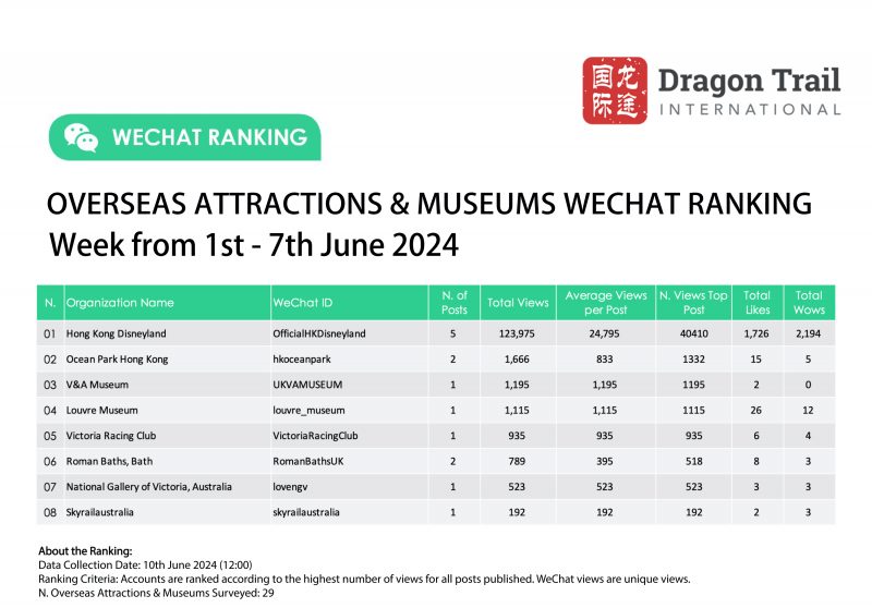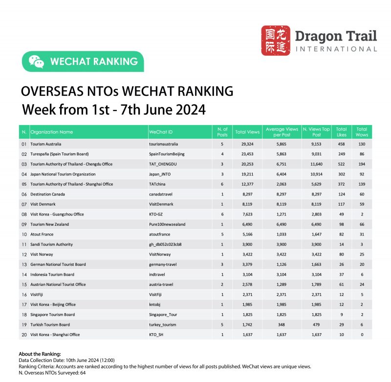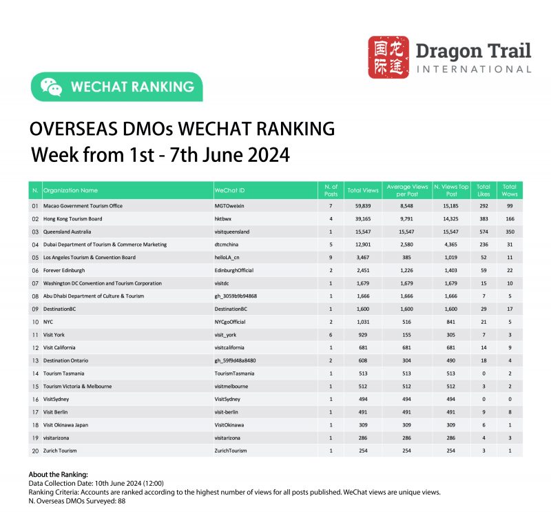 WeChat Weekly Rankings: Overseas Tourism Brands – 1-7 June 2024