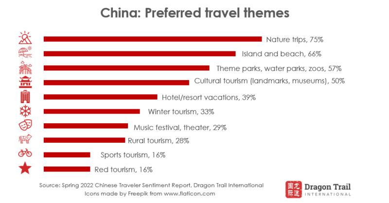 In other areas, Chinese travelers remain extremely consistent: Independent travel is now strongly preferred over traditional large-group tourism, and nature tops the list of preferred travel themes.