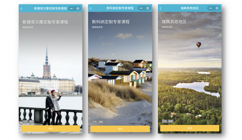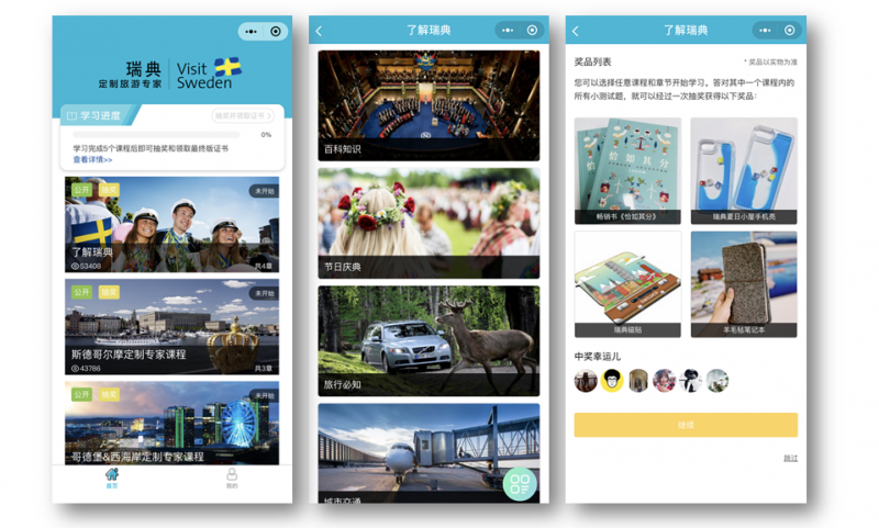 Each section contains course content to study, along with vibrant photos, followed by a multiple-choice quiz, and the opportunity to win Sweden-branded prizes. The mini-program also requires users to register, and this data is available to Visit Sweden, as well as added to Dragon Trail’s pool of more than 40,000 registered travel agents.