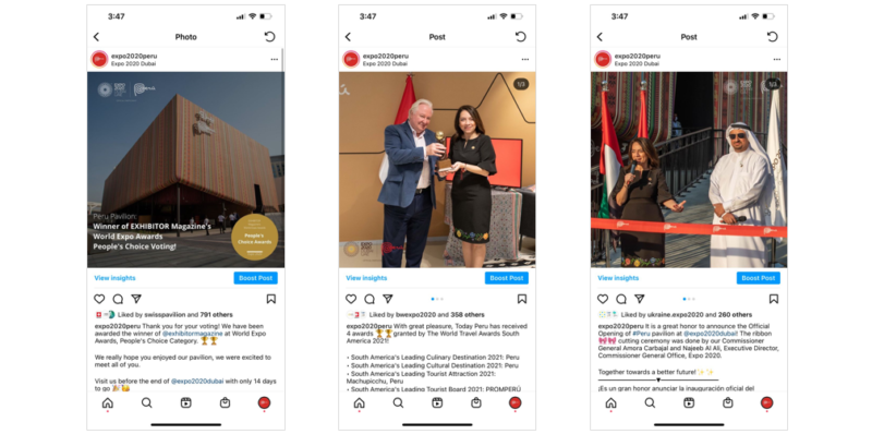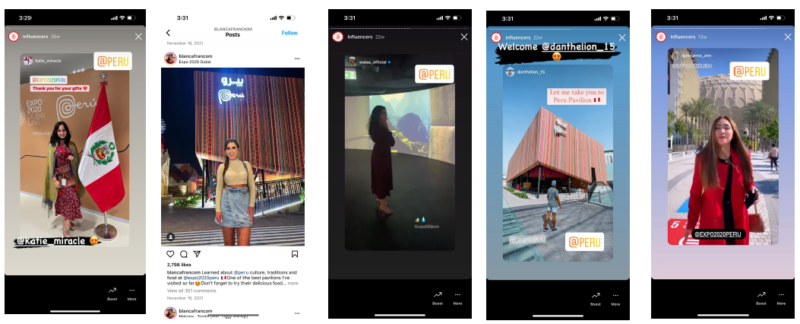 Influencer coverage on Instagram for PromPeru at Expo 2020 Dubai