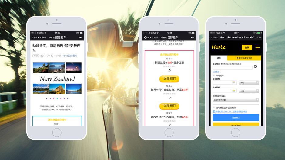 Finally, Hertz regularly publishes content on inspirational self-drive holidays through its WeChat account, with two posts on traveling all across Europe and the USA gaining tens of thousands of page views.