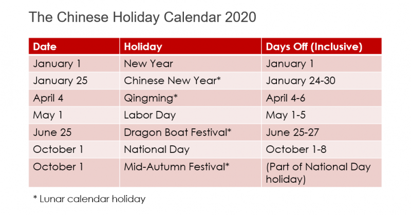 The official Chinese public holiday calendar for 2020 has been published, revealing a further extension to the May 1 holiday, as well as an eight-day Golden Week, giving Chinese workers more time off to travel in the new year.