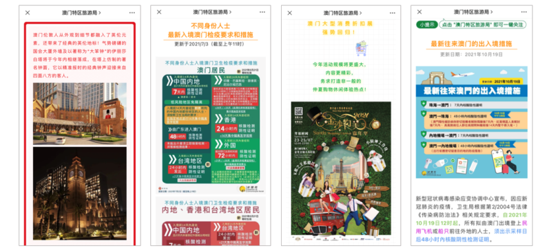 In total, Macao published 13 articles that surpassed the 100,000 view mark in the first week, the highest number of views recorded on WeChat data. While the SAR teamed up with all-star live streamers, promoted special events, and created holiday travel guides throughout the year, the most-read posts were generally informational articles with updates about quarantines, entry restrictions, and testing requirements.