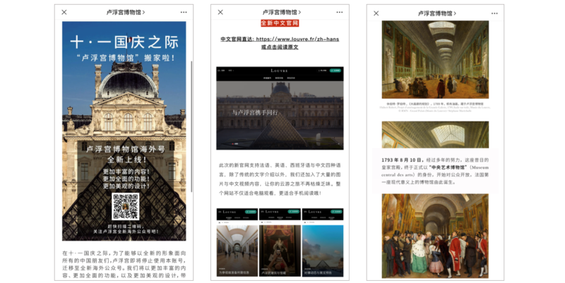 In 2021, the Louvre (left to right) launched a new WeChat account and a new Chinese website, and celebrated its 228th anniversary