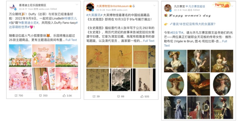 Women’s art was also the theme of one of Chateau de Versailles most-liked 2022 posts, shared for International Women’s Day. Other popular Weibo posts from Versailles included a video of baby swans, an announcement about the Gigapixel digital image collection, and a November post about Marie Antoinette.