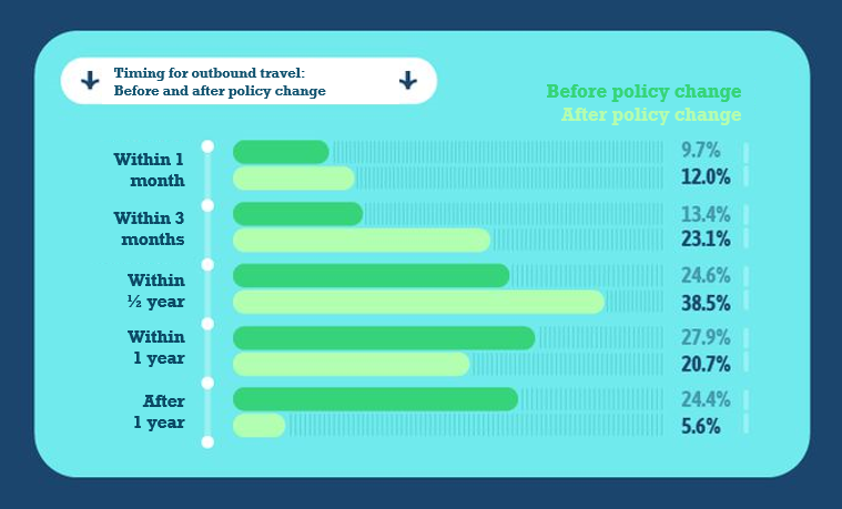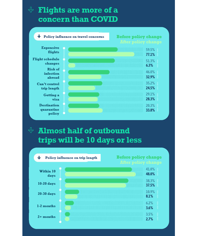 The policy changes also have some impact on trip length, with more travelers now planning a holiday within 10 days, and fewer looking at long-term travel of 20 days or more.