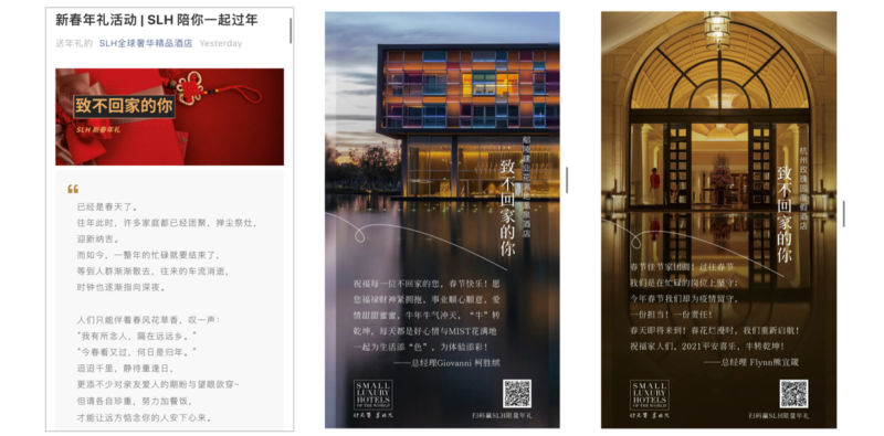 SLH’s 10 February WeChat article took a personal tone, addressing followers who can’t return home for Chinese New Year, with messages from each of the hotel group’s Chinese properties