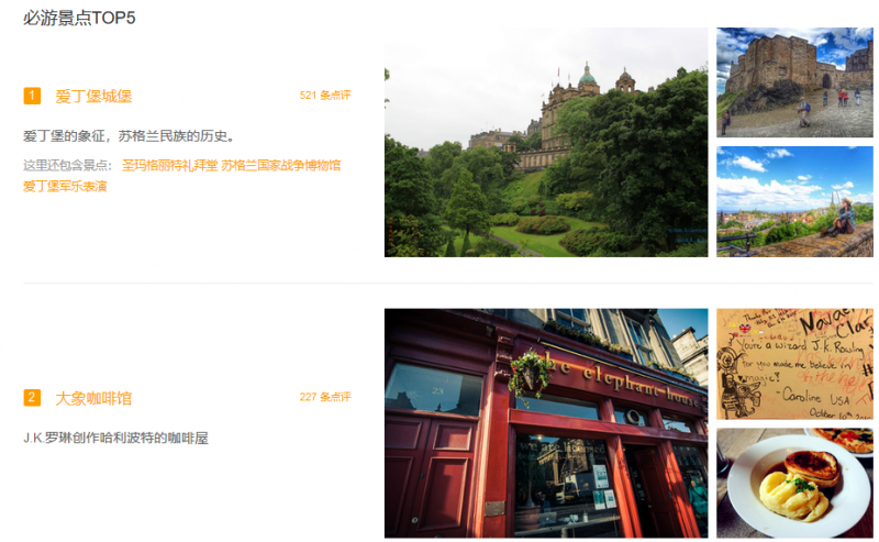 The “must-visit attractions” list for Edinburgh on Chinese travel website Mafengwo. The Elephant House, where JK Rowling wrote Harry Potter, is no. 2, topped only by Edinburgh Castle.