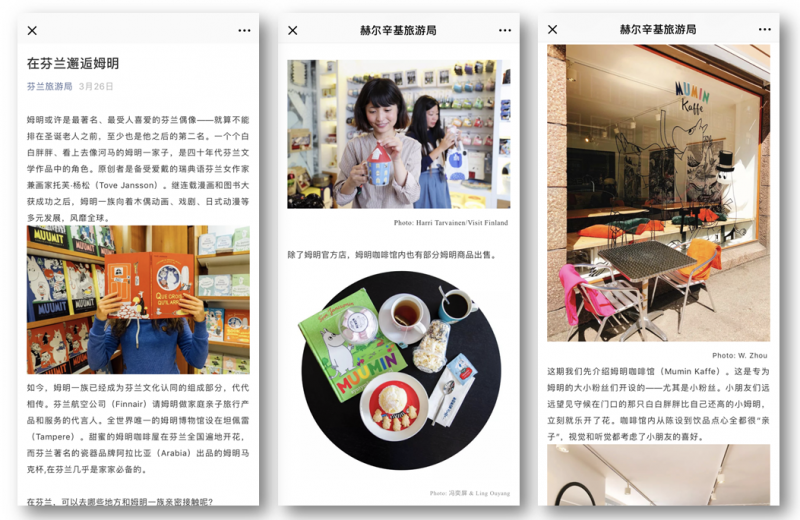 Visit Finland and My Helsinki have also both published WeChat articles in the past year about the Moomin books by Finnish author Tove Jansson, and Moomin-related businesses and attractions in Finland. The audience for these posts has been fairly limited, but the content may still help to capture a different niche market and give a destination more depth and variety in the eyes of potential visitors.