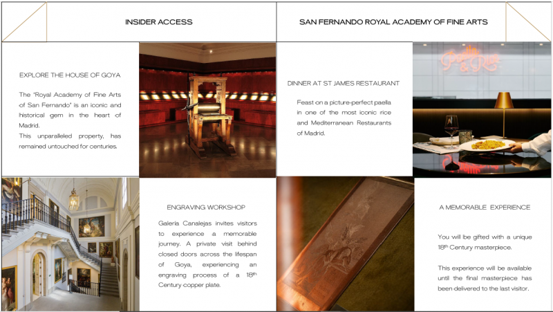The demand for experiences is influencing the entire luxury sector, too. “More and more brands are offering experiences – in-store experiences, or opening restaurants,” explains Galería Canalejas’ Tourism Director Silvia Martínez de Tejada. Luxury experiences like fine wines and private jets now have significantly higher growth forecasts than luxury products, and “we discovered that the Chinese visitors are requesting even more experiences,” she says. Now, Galería Canalejas offers historical walking tours and private shopping experiences. They’ve also designed an exclusive cultural experience where visitors enjoy a private visit to the nearby historical House of Goya, attend an engraving workshop, and finish with dinner at St. James Restaurant, where they can try “the picture-perfect paella.”