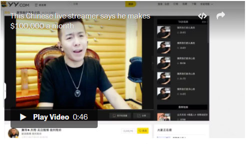 Professional live streamers have shot to fame over the last several years, with examples like Brother Li, the former mechanic from northeast China, who now has 13 million followers and claims to make US$100,000 a month. Apart from making money directly through selling products off the back of live streaming, as pearl seller Pearl Bro has done (he made US$4.8 million in 2016!), live streamers also earn money when viewers pay to give them virtual gifts and chat with them online.