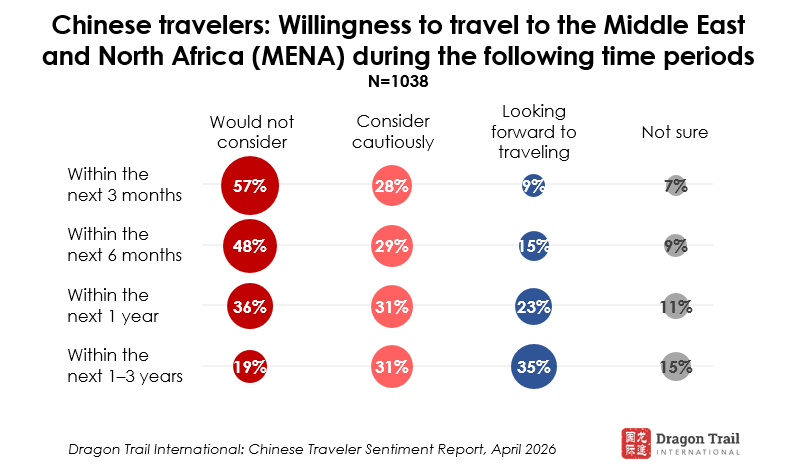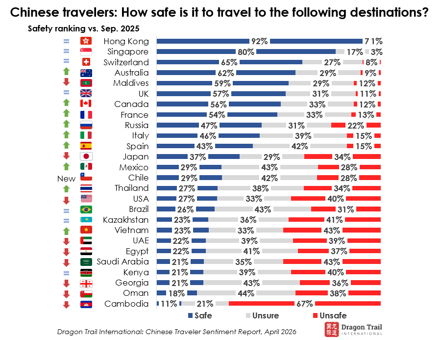 The April 2026 Chinese Traveler Sentiment Report is published by Dragon Trail Research (a division of Dragon Trail International), based on our own survey of 1,038 Chinese travelers in first-tier, new first-tier, second-tier, and third-tier cities throughout China. In addition to these reports, Dragon Trail Research also offers a number of services to travel brands and businesses, including bespoke consumer and trade surveys, focus groups and more. Please click here or contact us for more information on how we can help you get the information you need on China’s travel market.