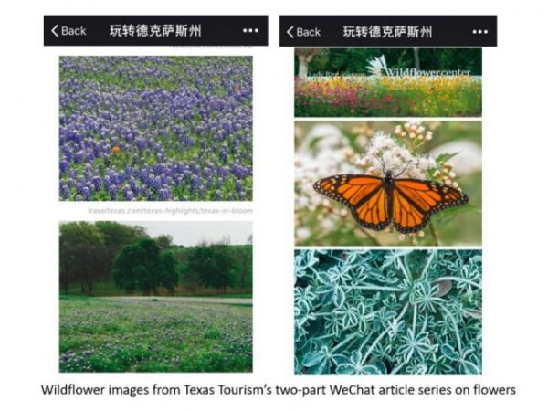 On the other side of the world, Texas Tourism topped the WeChat rankings for DMOs the week of January 29-February 4 thanks to its two-part article series on flowers in Texas, ranging from rose gardens to fields of wild cornflowers. The articles, posted on January 30 and February 1, got over 6,000 views, and elicited comments like “Texas looks like a magnificent painted scroll” and “on a cold day, this made me feel warm for a moment.”