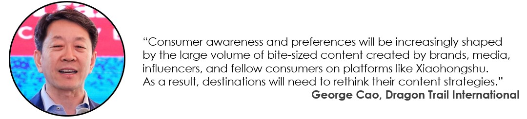Consumer awareness and preferences will be increasingly shaped by the large volume of bite-sized content created by brands, media, influencers, and fellow consumers on platforms like Xiaohongshu. As a result, destinations will need to rethink their content strategies, relying more on third-party content creators and artificial intelligence.