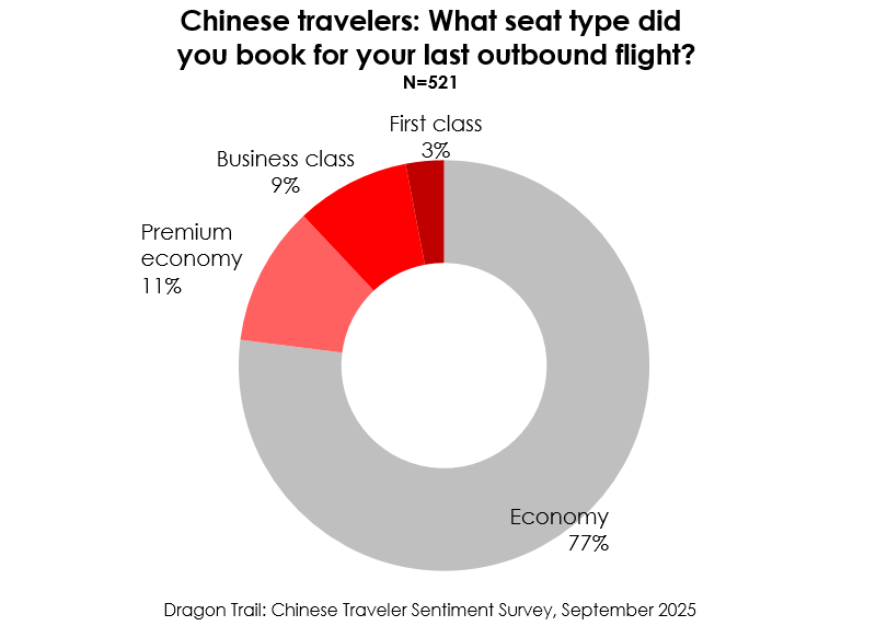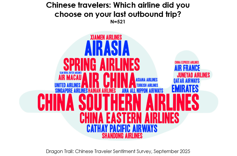 In Dragon Trail’s September 2025 sentiment survey, we asked more than 500 Chinese consumers with outbound travel experience about their previous decision-making process for selecting and booking outbound flights. Their responses reveal first-hand insights on Chinese travelers’ airline choices, seat preferences, booking habits, and the key factors influencing their flight-booking decisions for outbound travel.