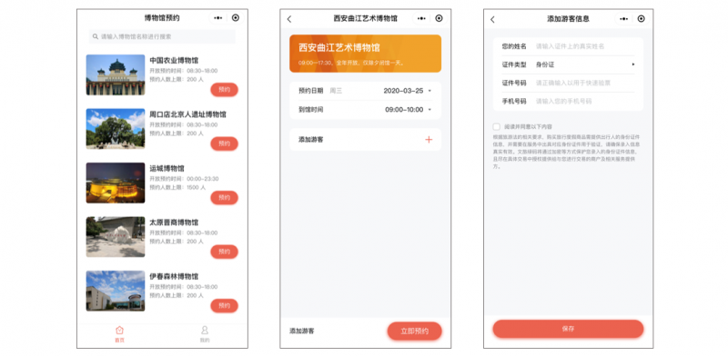 The “Culture and Tourism Green Code” mini-program: Select a museum, select a date and time to visit, and enter your personal information to book