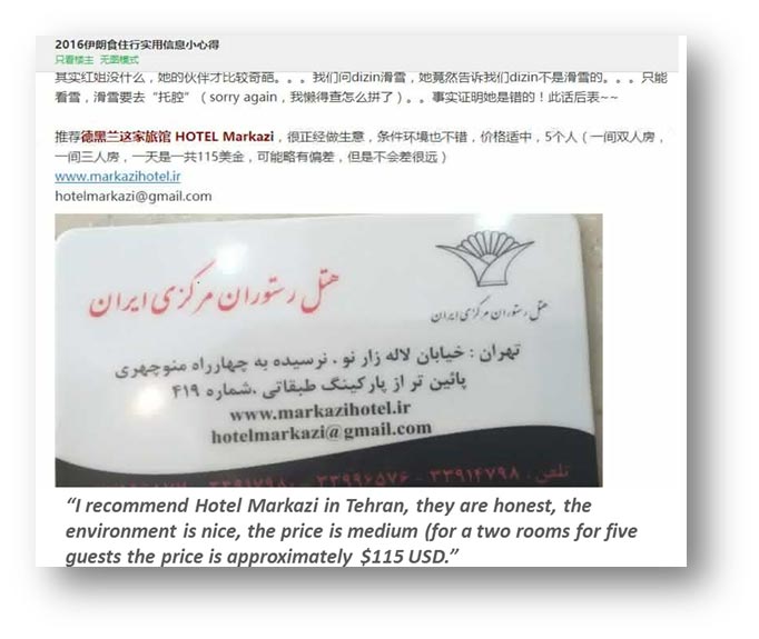 Even with no official marketing activities, online reviews can have a major impact on business. One example of this is the Hotel Markazi in Tehran, which receives 50-80% of its guests from China. Although the hotel has done no advertising or marketing campaigns, it has been lucky enough to get a good reputation on Qyer. Although in this case, the reviews came in without the hotel doing anything to encourage them, it’s well worth asking Chinese guests to review your travel product, the same way businesses in the west might encourage guests to leave a review on Facebook or TripAdvisor. A brief mention at the end of a tour, a notice on a door, or a note on a menu or a hotel handbook could go a long way.