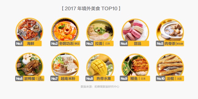 Top 10 foods to eat abroad, from the Mafengwo report.