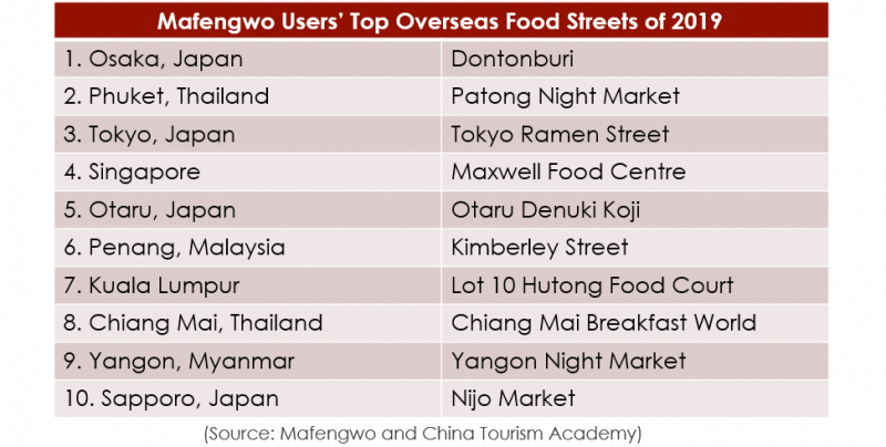 Osaka’s Dontonburi ranks as the number one food street for Chinese travelers in both Mafengwo’s and rival travel website Qyer’s 2019 reports. There are no other streets or street food markets that appear on both lists, although the city of Chiang Mai, Thailand, does feature on both lists.