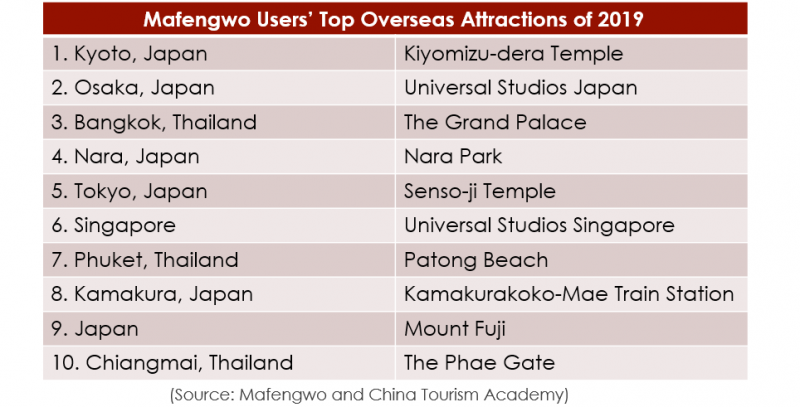 All of the top 10 attractions for Mafengwo users in 2019 were located in East and Southeast Asia, with more than half in Japan.