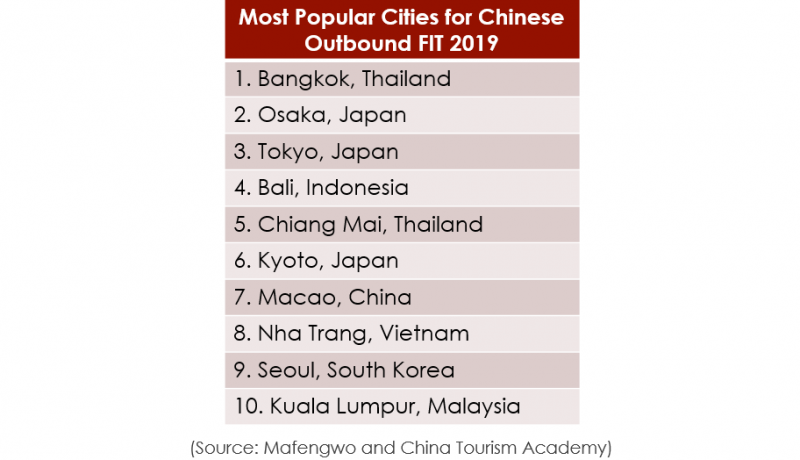 In 2019, FIT did not show major differences to FIT in 2018, with the majority of independent travelers still coming from the same group of top-tier cities. However, FIT from lower-tier cities is growing at a faster rate. The top 10 cities for outbound FIT in 2019 were: Beijing, Shanghai, Guangzhou, Shenzhen, Chengdu, Chongqing, Hangzhou, Tianjin, Wuhan, and Nanjing.