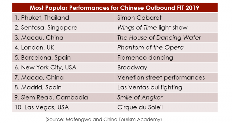 According to the China Tourism Academy, in the first half of 2019, more than 80% of Chinese tourists partook in a cultural experience while traveling. The top overseas performances – presumably based on ticket sales through Mafengwo – shows interest in cultural displays throughout Asia, Europe, and the US.