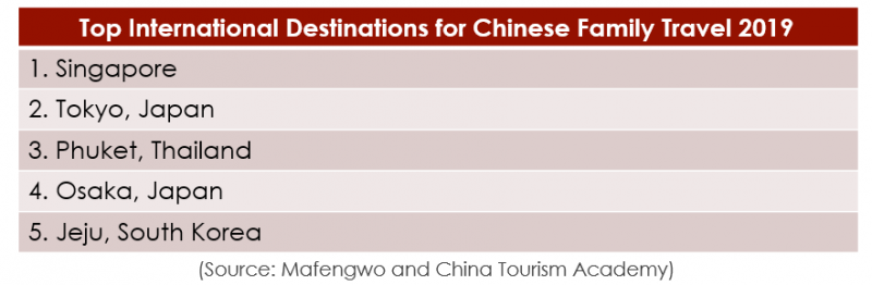 The top five overseas destinations for family travel were all in East and Southeast Asia.