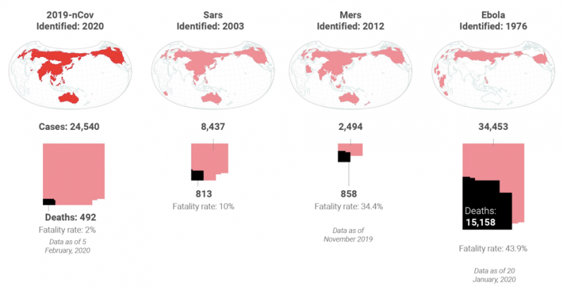Compared to the other health crises, the fatality rate of nCoV has maintained at 2%, smaller than the SARS epidemic at 10%, Mers at 34% and Ebola at 44%.