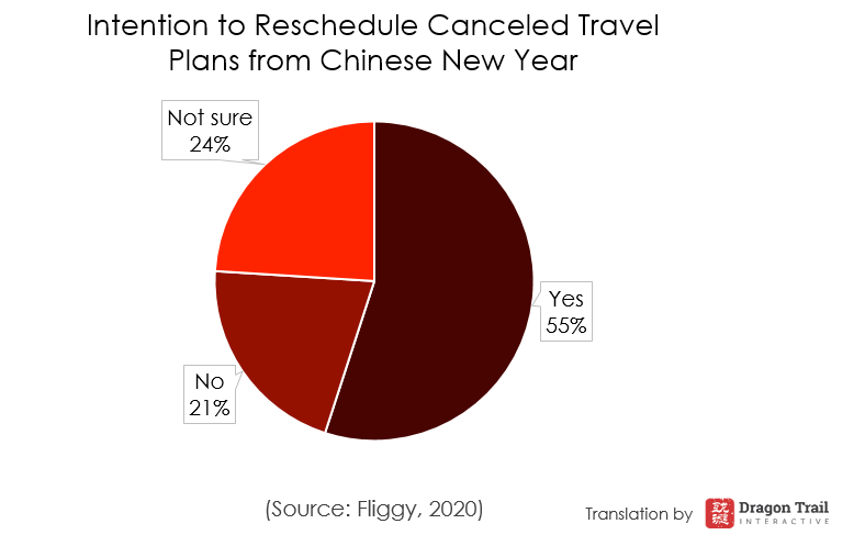 After the outbreak and subsequent travel restrictions at the end of January, 50% of outbound trips booked through Fliggy for travel over the Chinese New Year period were canceled. This is significant, but less than the 70% cancellation rate for domestic trips. More than half of consumers indicated that they would reschedule their canceled trips.