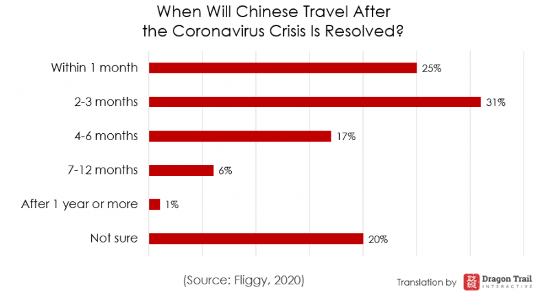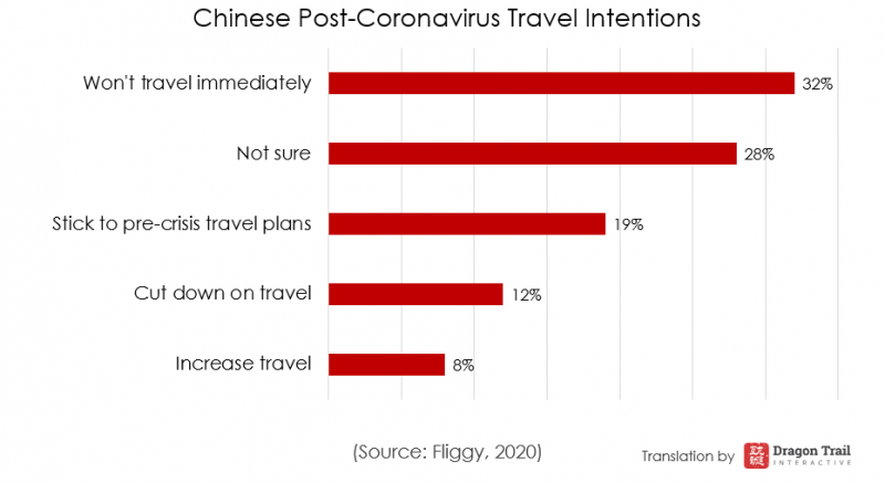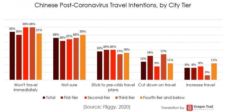 The survey findings revealed that travelers from cities classified as fourth-tier or below were actually the demographic most likely to want to increase their travel after the virus. (Translator’s note: Generally speaking, lower-tier cities do tend to have a higher growth rate for travel than more established top-tier city markets, so it’s unclear if this result is directly related to the virus or if those cities’ residents would have planned to travel more in any case.)