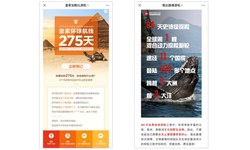 Around the world or pole to pole? WeChat readers were attracted to big-time adventure cruises from Royal Caribbean (left) and Hurtigruten
