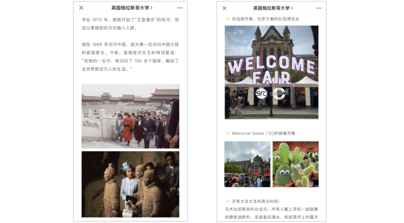 The University of Glasgow’s top WeChat posts included a retrospective on Queen Elizabeth II, and practical information for newly arrived students